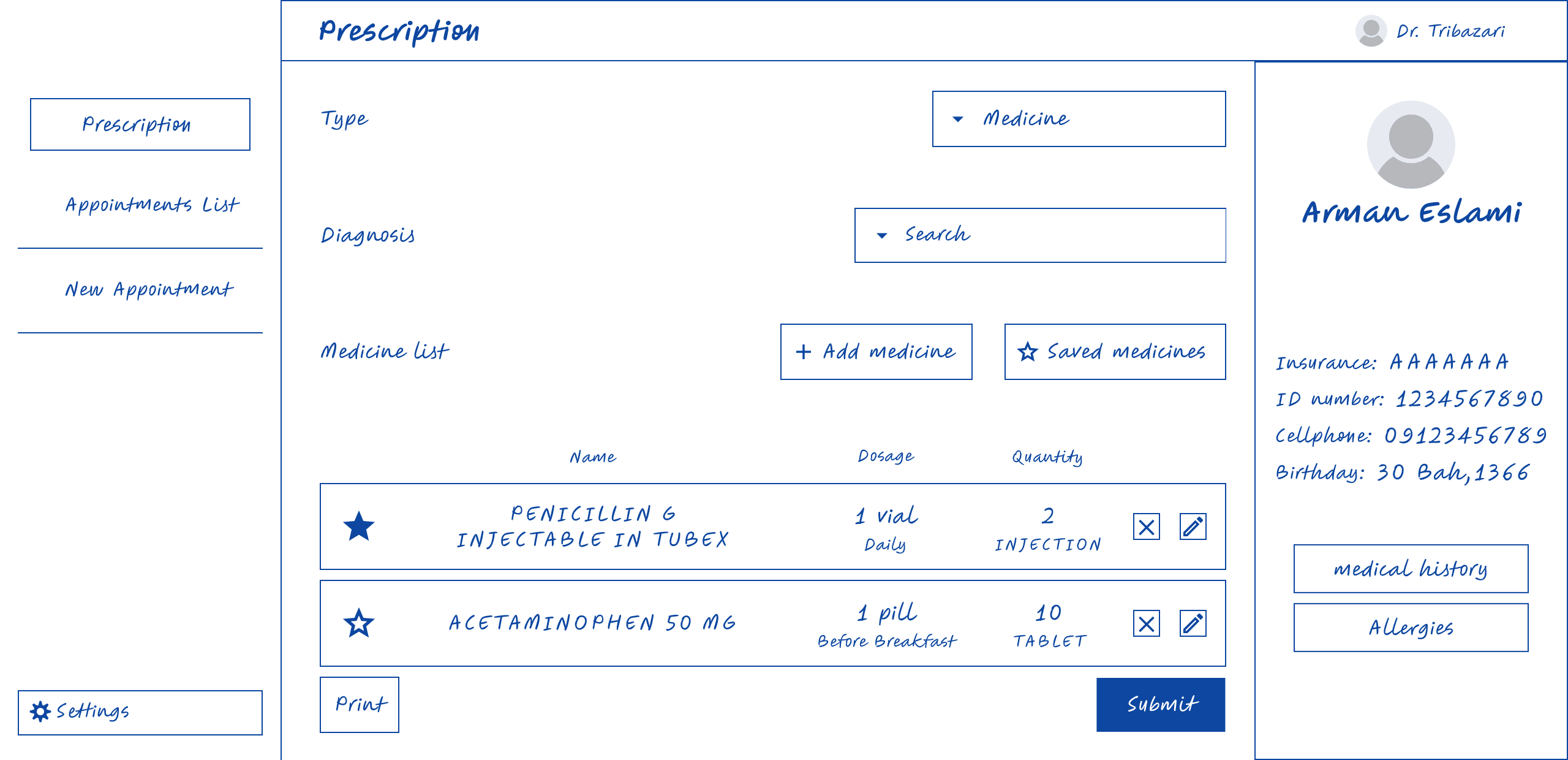 Submit/Print the prescription