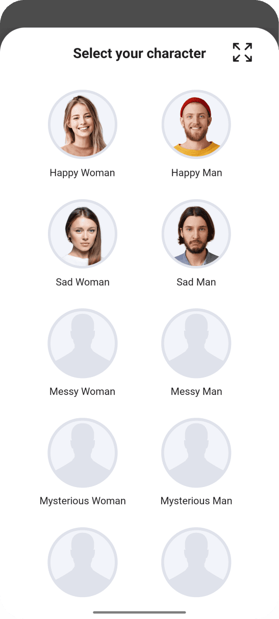 The Solution: Redesigned the home screen to replace generic icons with high-intent emotional characters (Confession, Bored, Sad, Lonely).