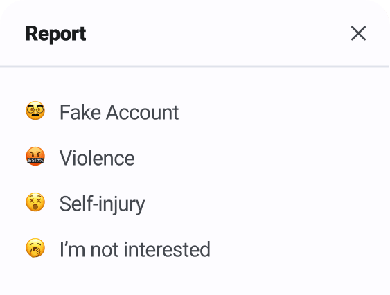 The Solution: Integrated a Report & Flag function. In the backend, we used it to flag users who received more than 3 reports in 1 hour.